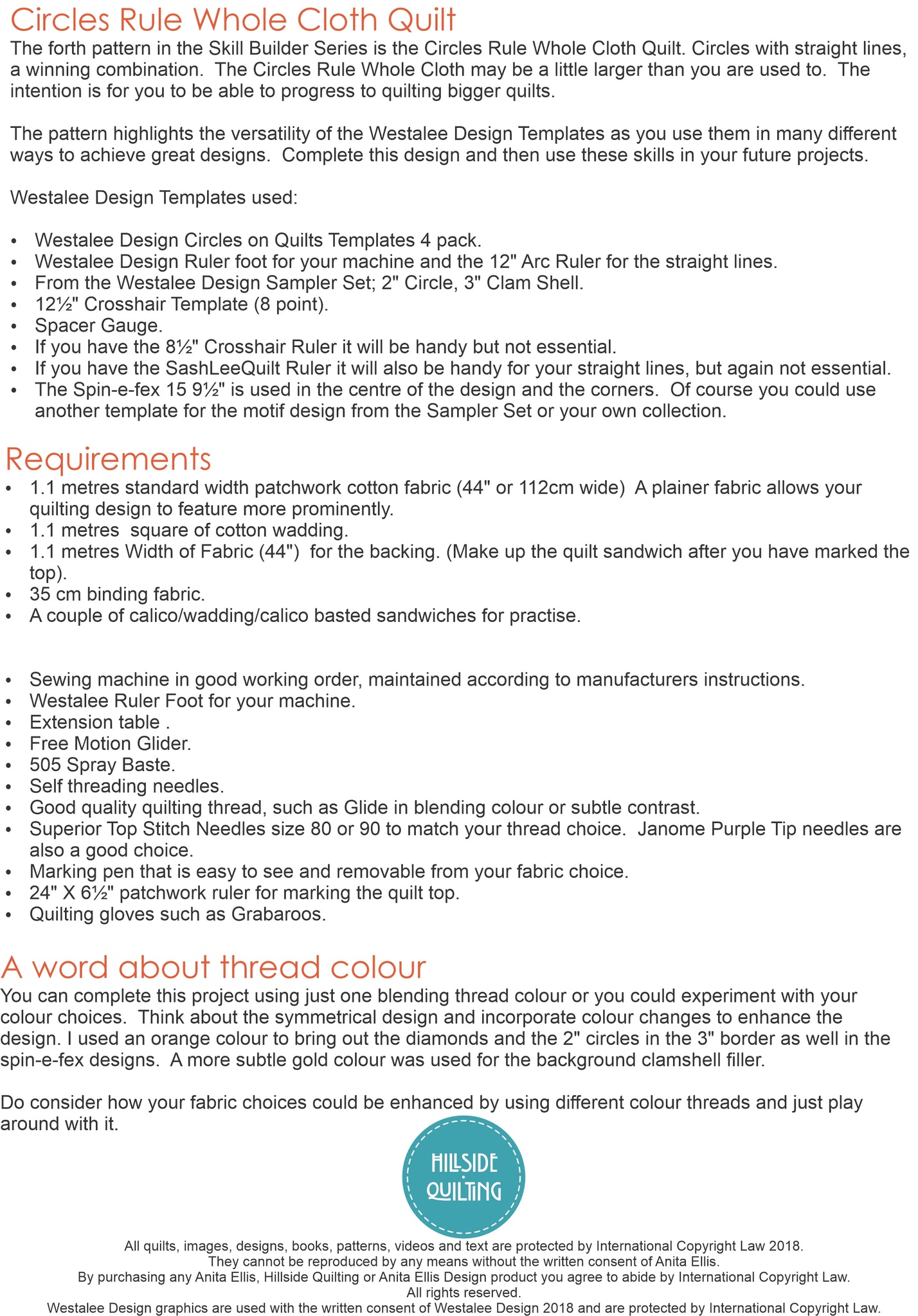 The forth pattern in the Skill Builder Series that uses the Westalee Design Circle Templates and Spin-e-fex templates too. Templates from the starter set are also used.